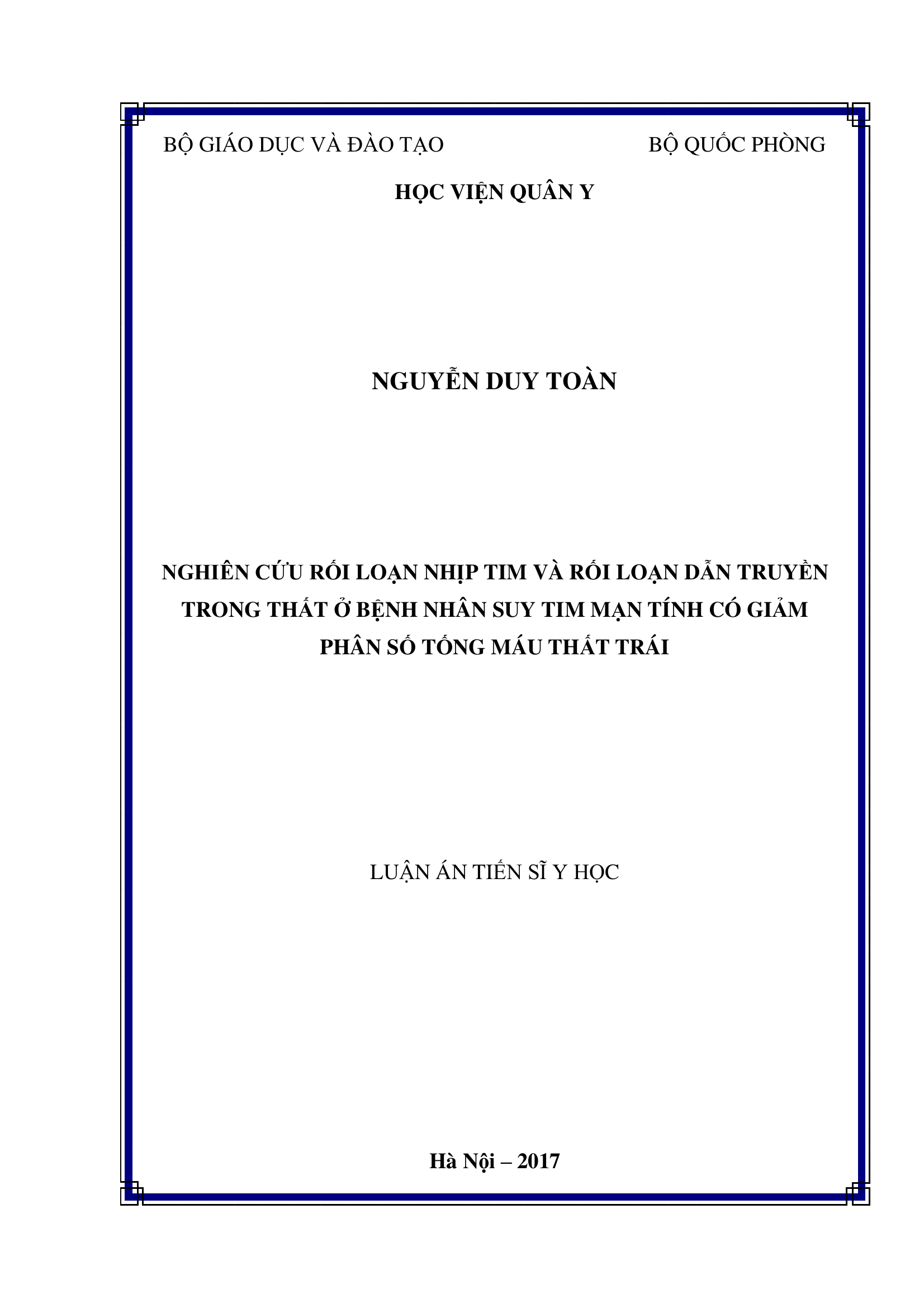 Nghiên cứu rối loạn nhịp tim và rối loạn dẫn truyền trong thất ở bệnh nhân suy tim mạn tính có giảm phân số tống máu thất trái