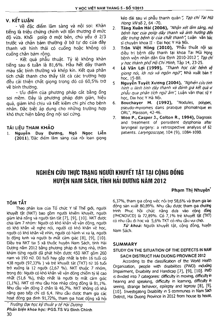 Nghiên cứu thực trạng người khuyết tật tại cộng đồng huyện Nam Sách, Hải Dương năm 2012