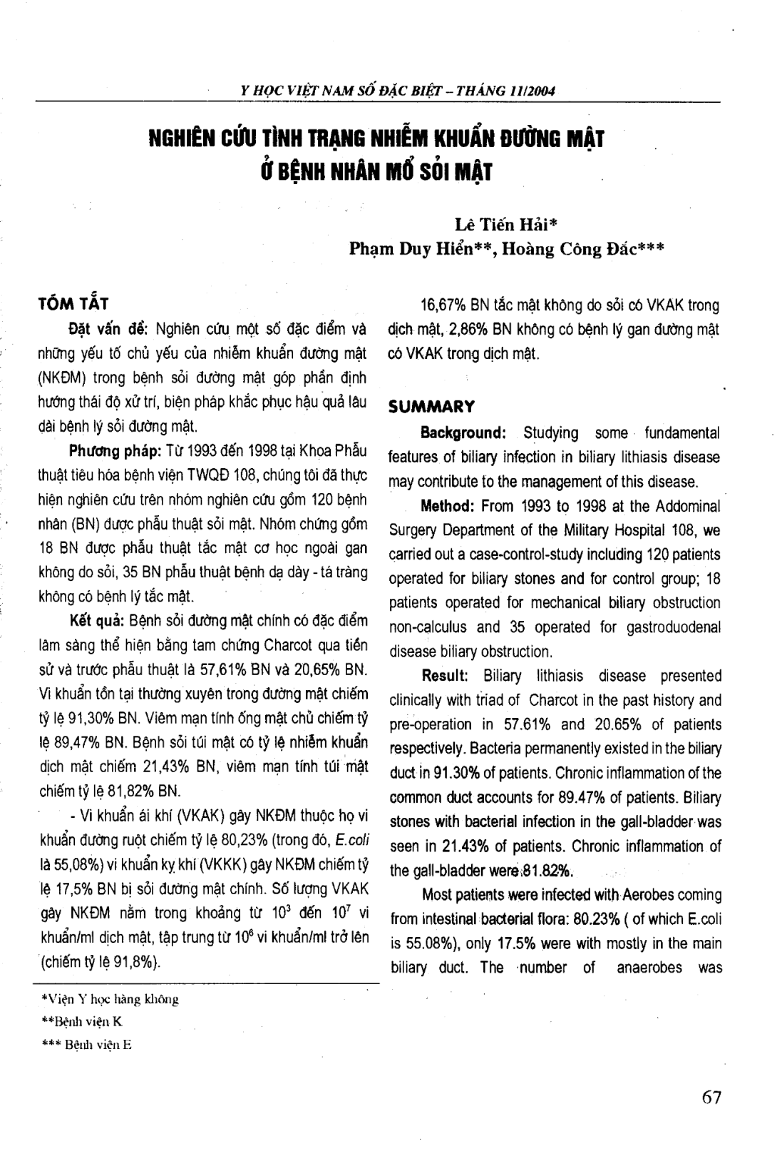 Nghiên cứu tình trạng nhiễm khuẩn đường mật ở bệnh nhân mổ sỏi mật