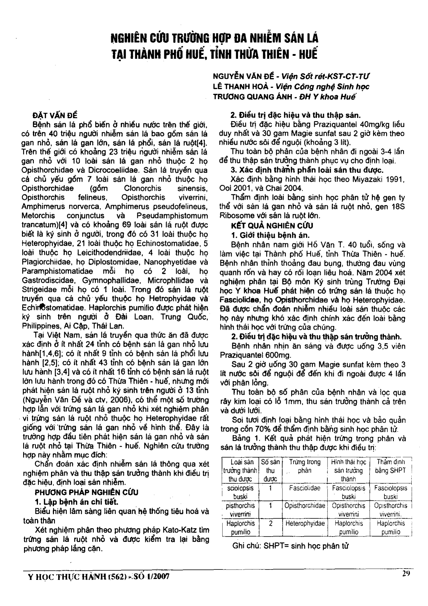Nghiên cứu trường hợp đa nhiễn sán lá tại TP Huế tỉnh Thừa Thiên Huế