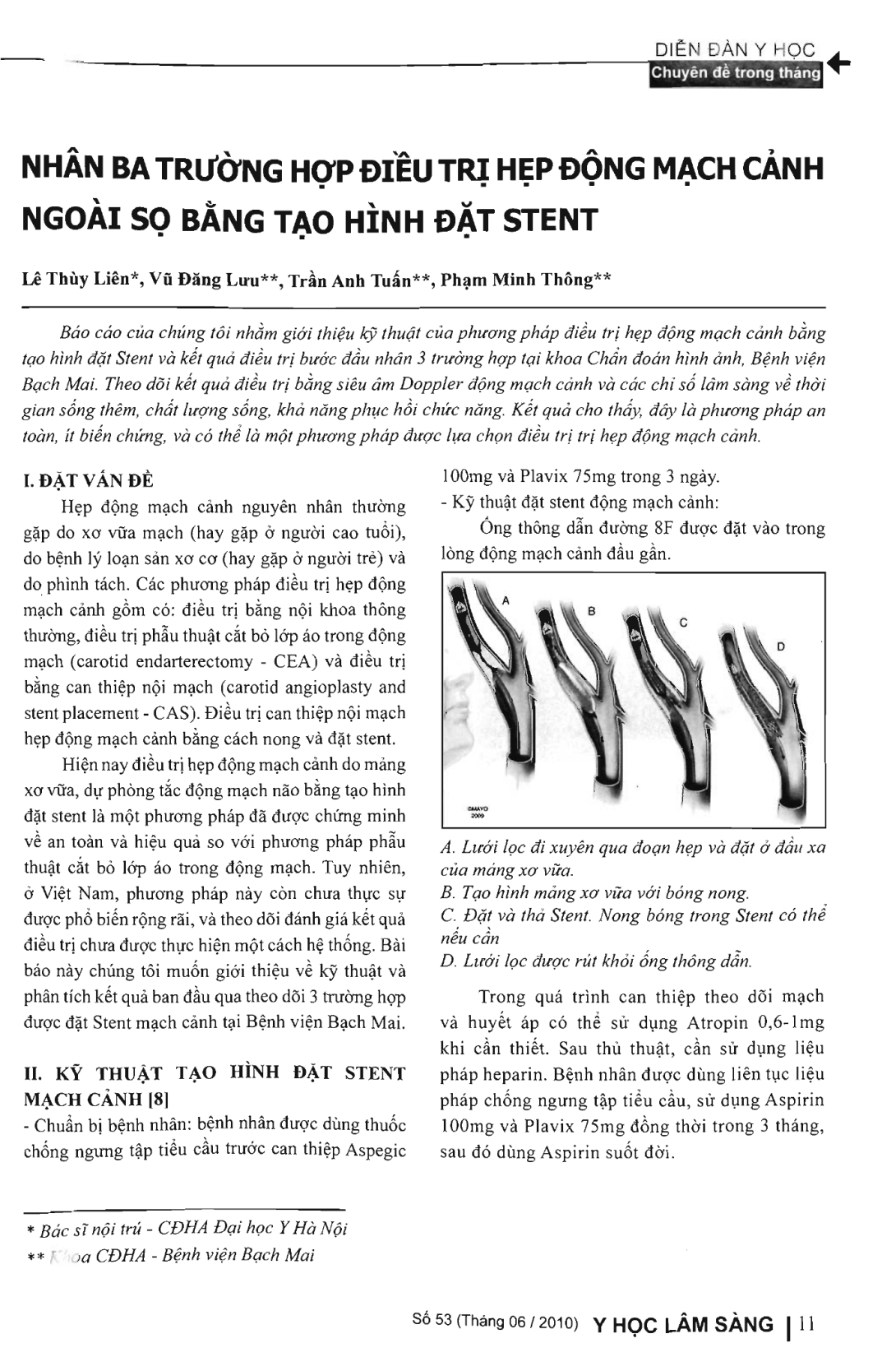 Nhân ba trường hợp điều trị hẹp động mạch cảnh ngoài sọ bằng tạo hình đặt stent