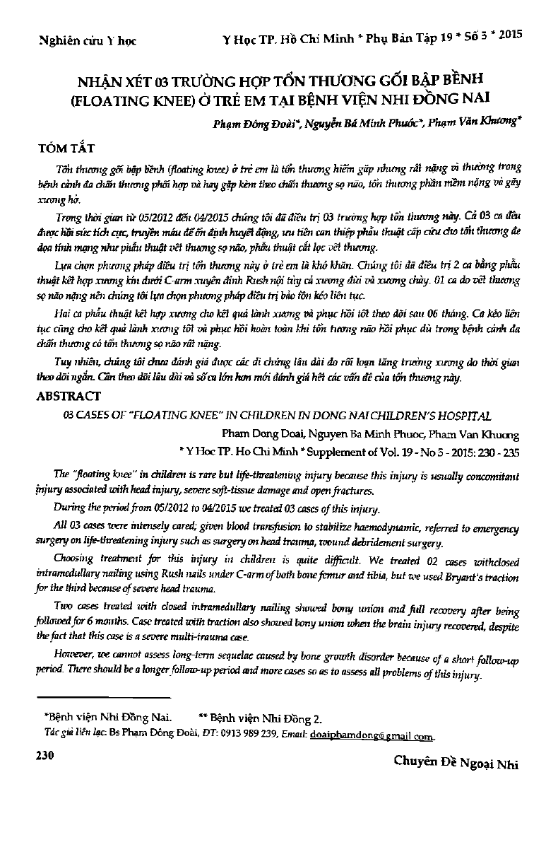 Nhận xét 3 trường hợp tổn thương gối bập bềnh (Floating Knee) ở trẻ em tại Bệnh viện Nhi Đồng Nai