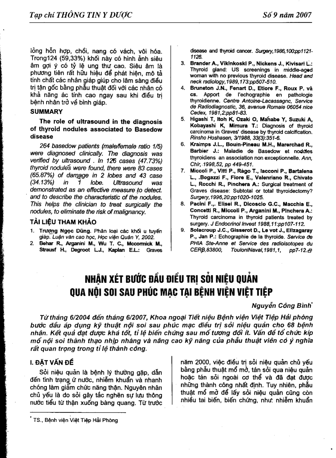 Nhận xét bước đầu điều trị sỏi niệu quản qua nội soi sau phúc mạc tại bệnh viện Việt Tiệp