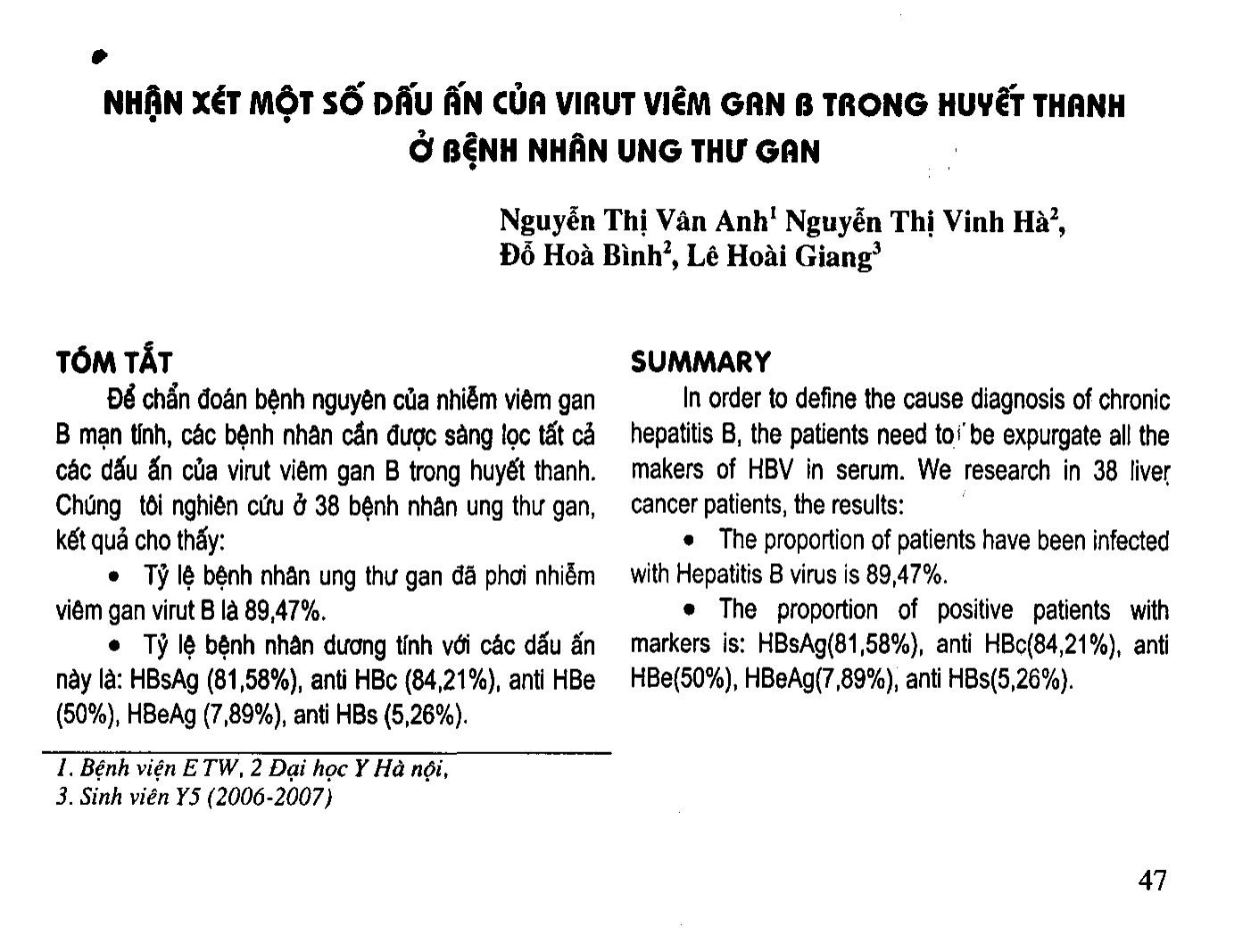 Nhận xét một số dấu ấn của virut viêm gan B trong huyết thanh ở bệnh nhân ung thư gan