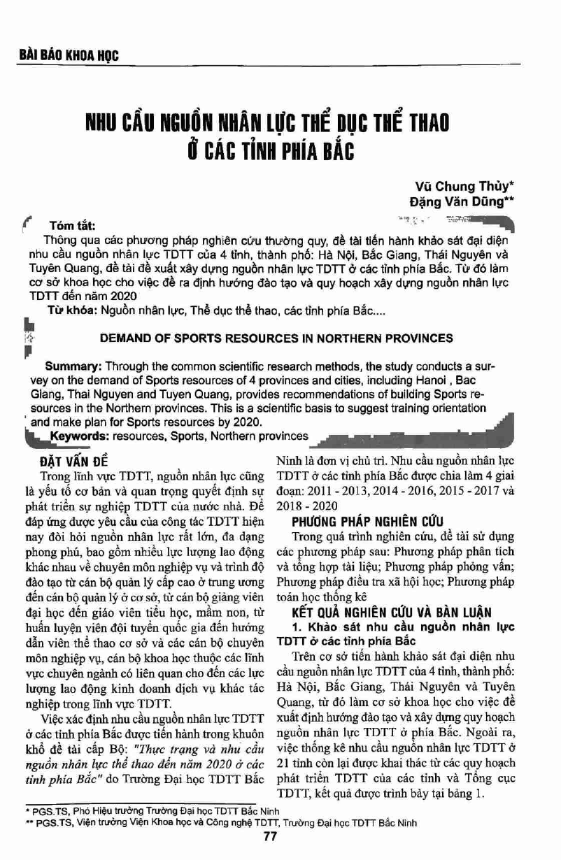 Nhu cầu nguồn nhân lực thể dục thể thao ở các tỉnh phía Bắc