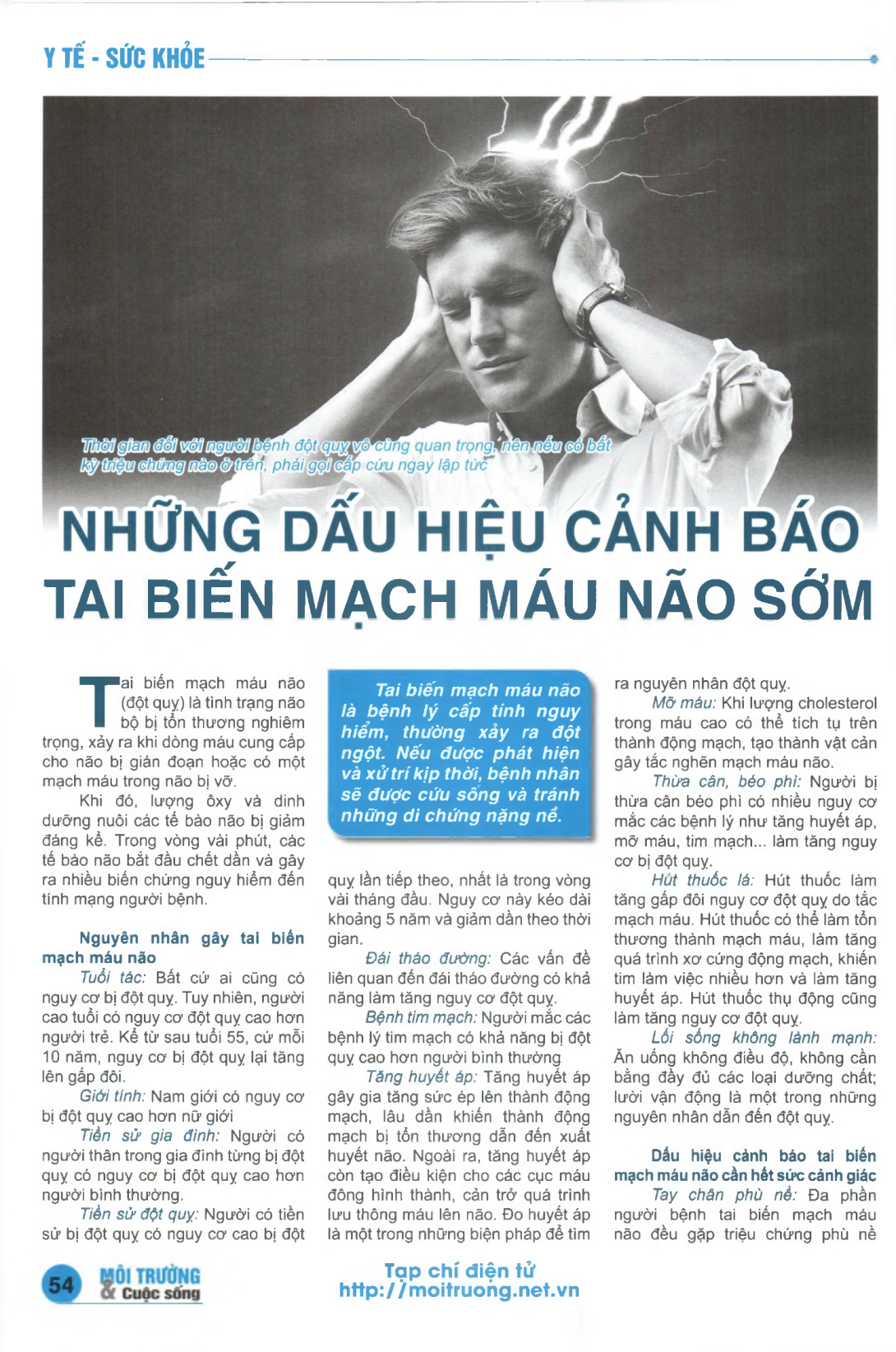 Tai biến mạch máu não (đột quy) là tình trạng não bộ bị tổn thương nghiêm trọng, xảy ra khi dòng máu cung cấp cho não bị gián đoạn hoặc có một mạch máu trong não bị vỡ. Khi đó, lượng ôxỵ và dinh dưỡng nuôi các tế bào não bị giảm đáng kể. Trong vòng vài phút, các tế bào não bắt đầu chết dần và gây ra nhiều biến chứng nguy hiểm đến tính mạng người bệnh. Tai biến mạch máu não là bệnh lý cấp tính nguy hiểm, thường xảy ra đột ngột. Nếu được phát hiện và xửtrí kịp thời, bệnh nhân sẽ được cứu sông và tránh