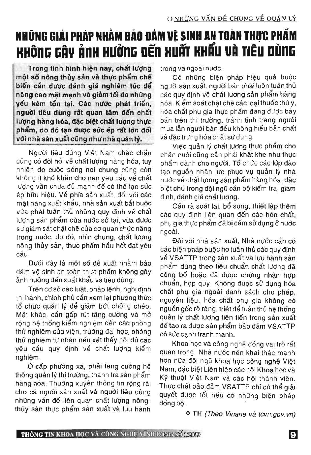 Những giải pháp nhằm đảm bảo vệ sinh an toàn thực phẩm không gây ảnh hưởng đến xuất khẩu và tiêu dùng.