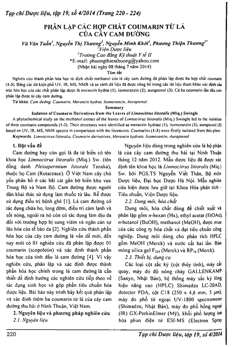 Phân lập các hợp chất Coumarin từ lá của cây cam đường