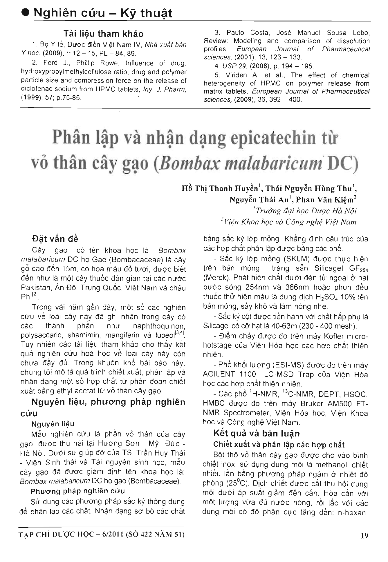 Phân lập và nhận dạng epicatechin từ vỏ thân cây gạo (Bombax malabaricum DC)