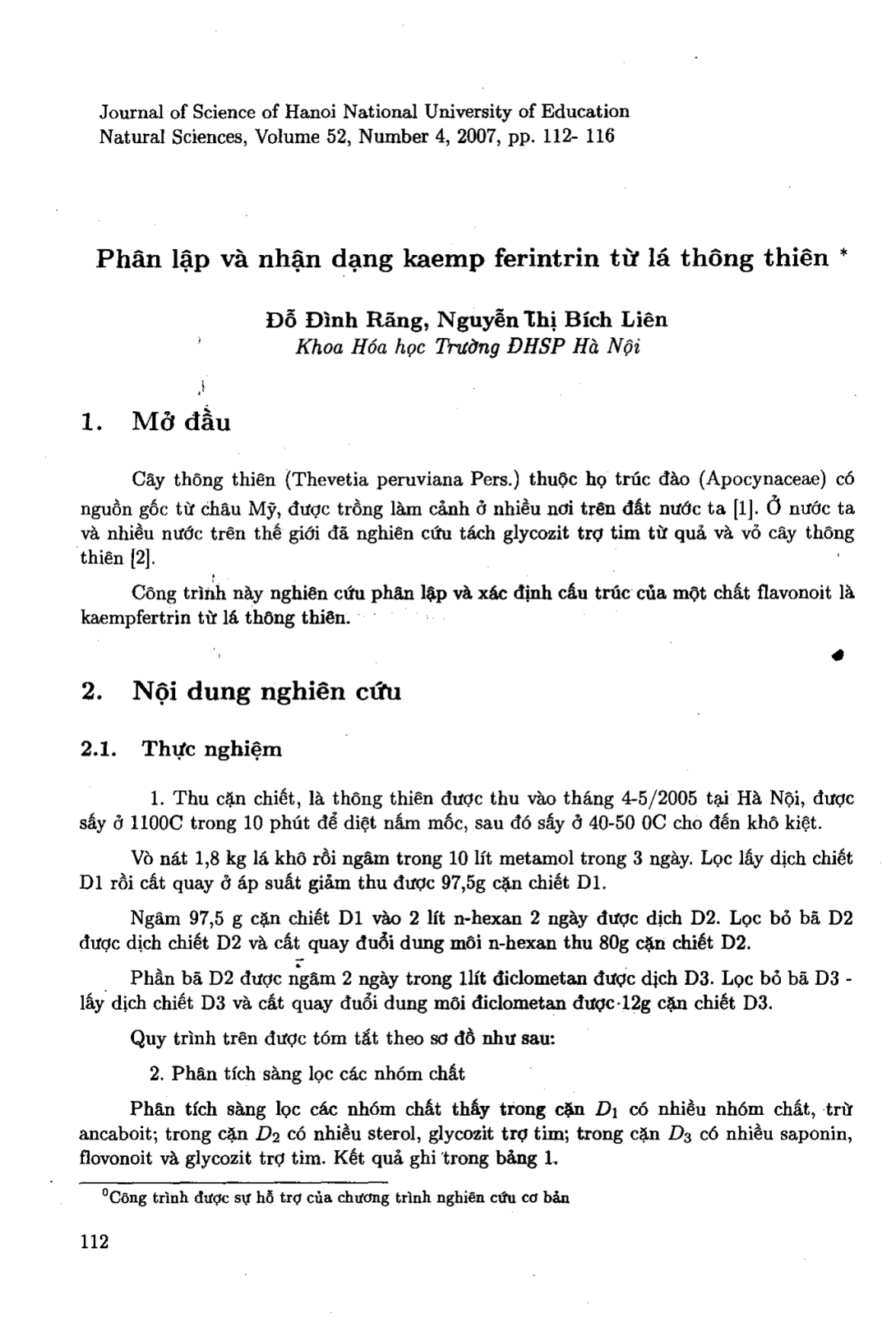 Phân lập và nhận dạng kaemp ferintrin từ lá thông thiên