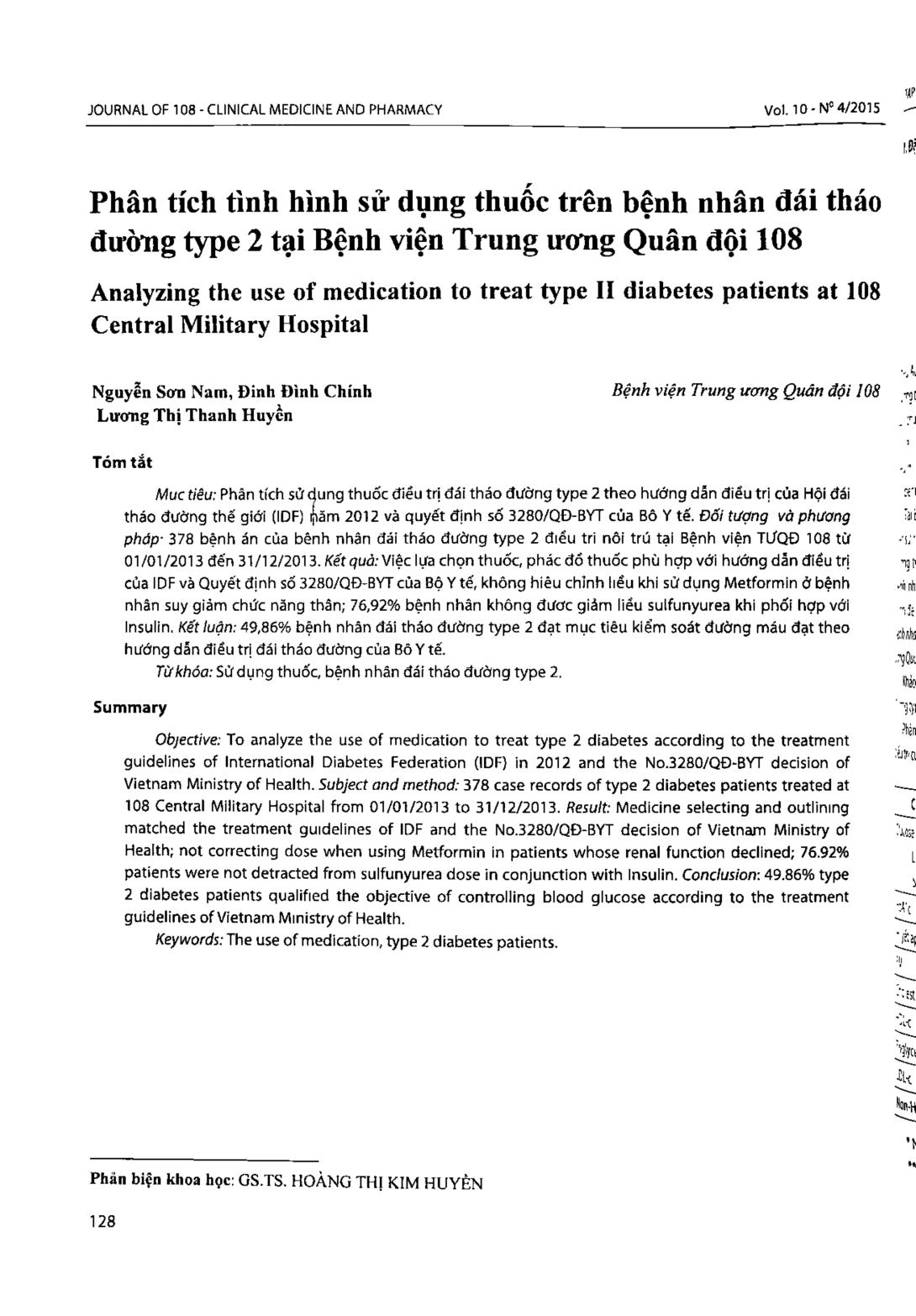 Phân tích tình hình sử dụng thuốc trên bệnh nhân đái tháo đường type 2 tại Bệnh viện Trung ương Quân đội 108
