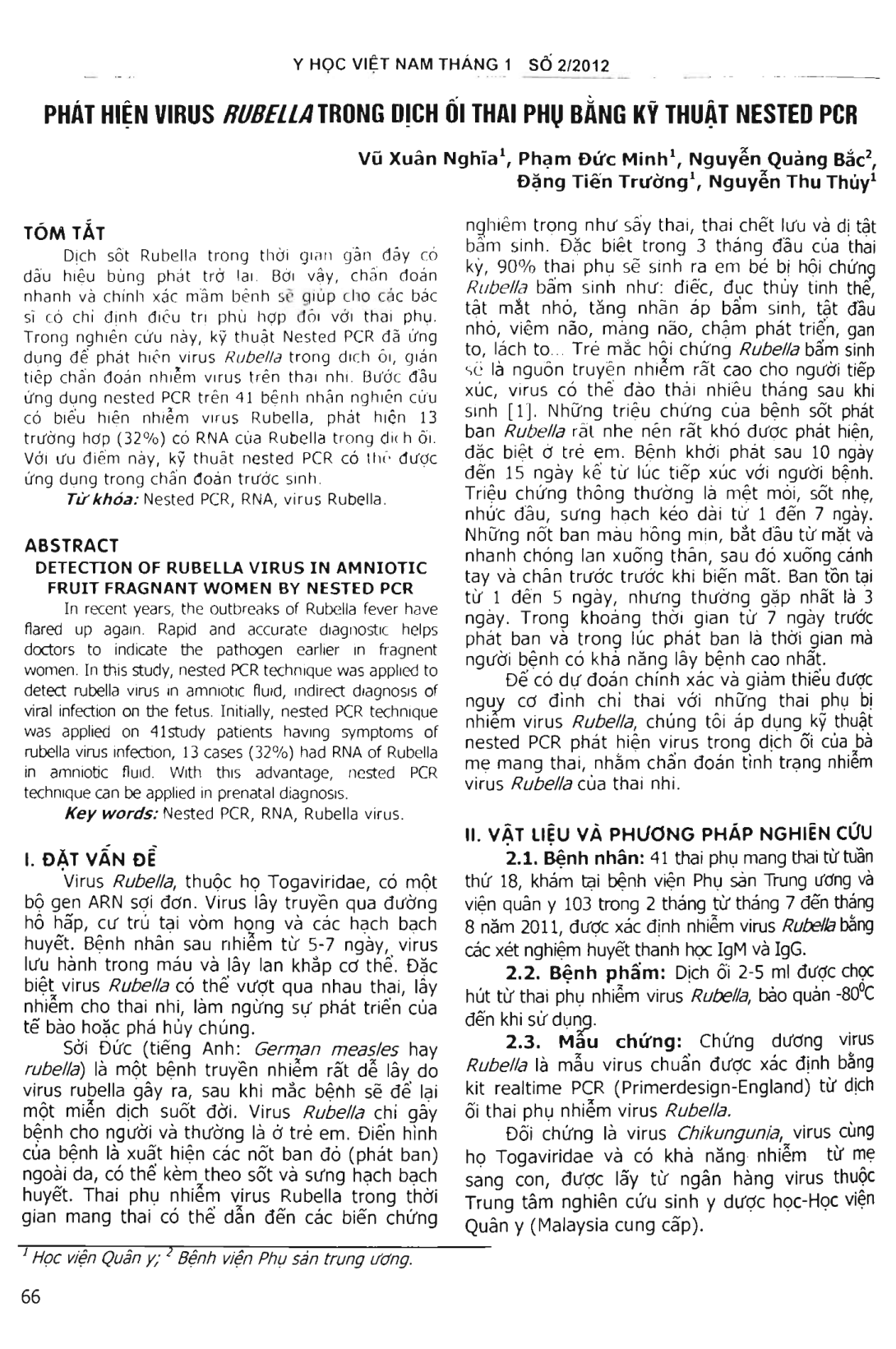 Phát hiện virus Rubella trong dịch ối thai phụ bằng kỹ thuật Nested PCR