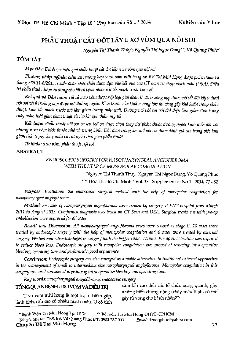 Phẫu thuật cắt đốt lấy u xơ vòm qua nội soi