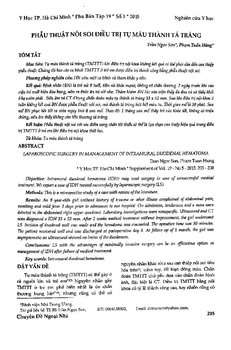 Phẫu thuật nội soi điều trị tụ máu thành tá tràng