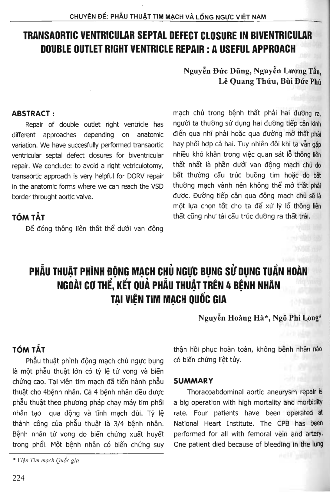 Phẫu thuật phình động mạch chủ ngực bụng sử dụng tuần hoàn ngoài cơ thể, kết quả phẫu thuật trên 4 bệnh nhân tại Viện tim mạch Quốc gia