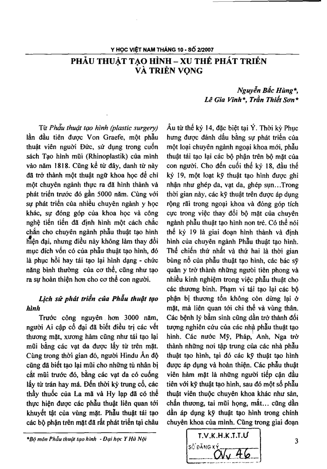 Phẫu thuật tạo hình – xu thế phát triển và triển vọng