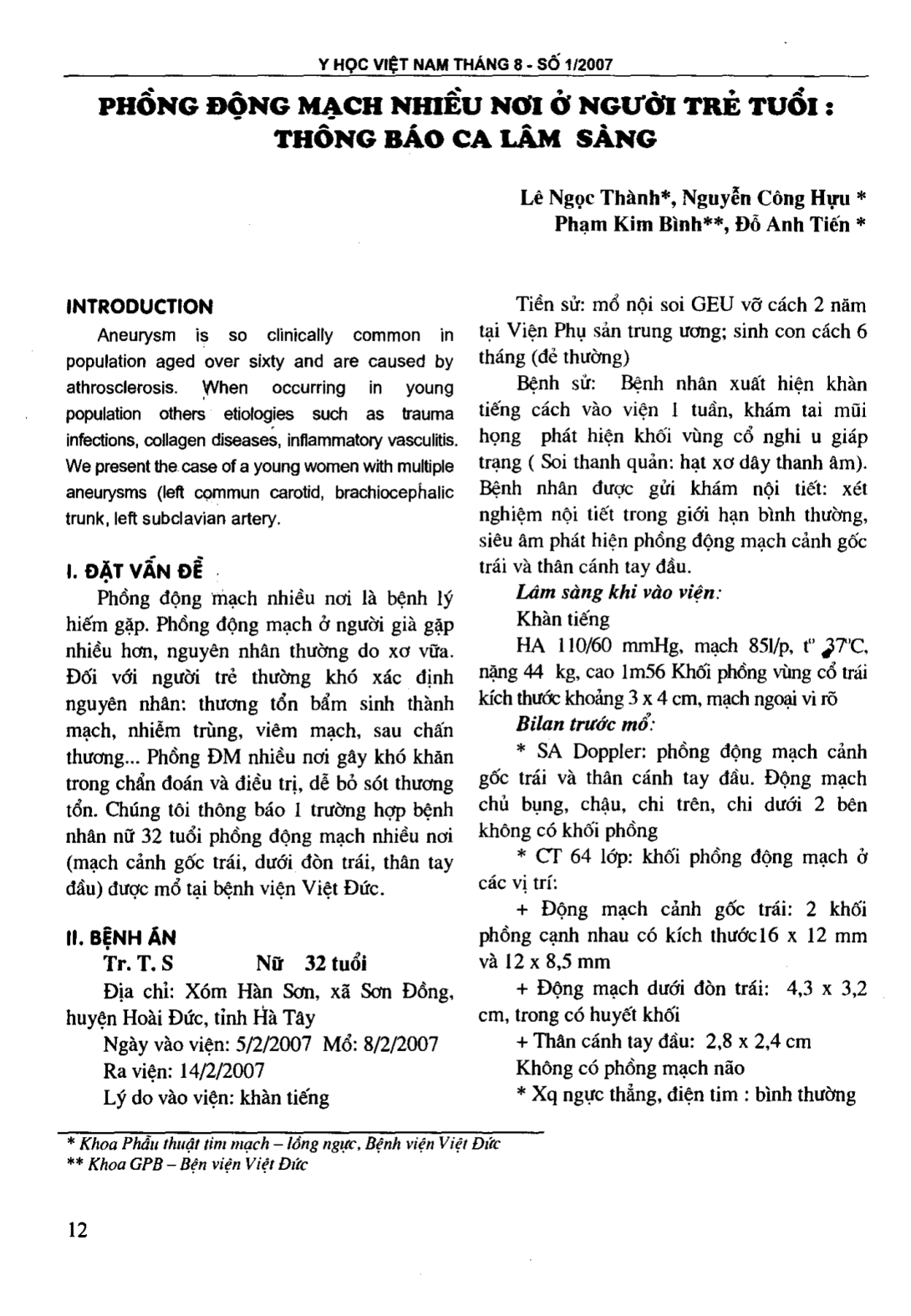 Phồng động mạch nhiều nơi ở người trẻ tuổi: thông báo ca lâm sàng