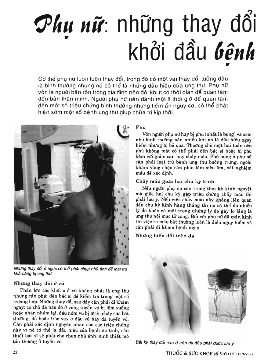 Phụ nữ: Những thay đổi có thể là khởi đầu bệnh ung thư