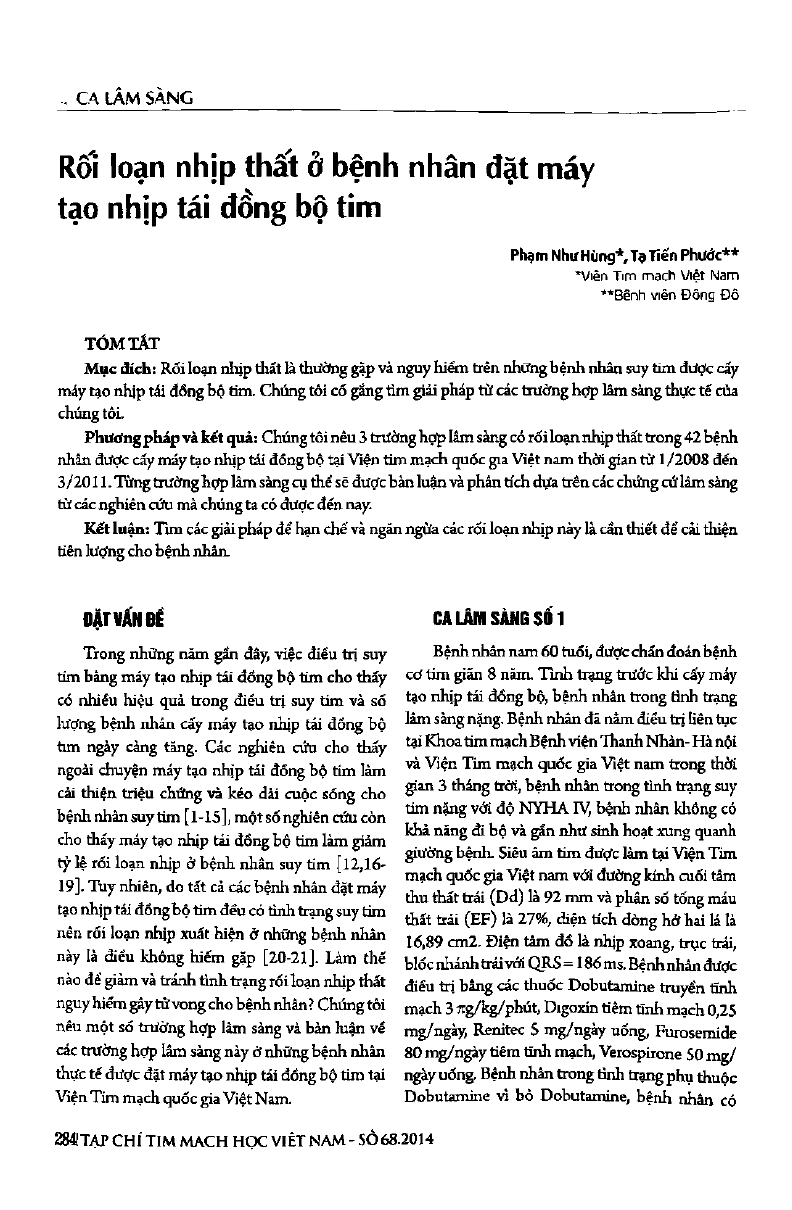 Rối loạn nhịp thất ở bệnh nhân đặt máy tạo nhịp tái đồng bộ tim