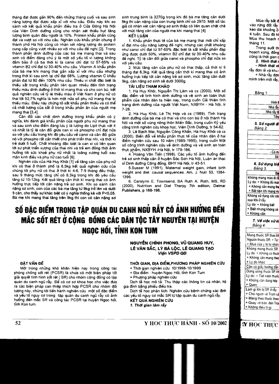 Số đặc điểm trong tập quán du canh ngủ rẫy có ảnh hưởng đến mắc sốt rét ở cộng đồng các dân tộc Tây Nguyên tại huyện Ngọc Hồi, tỉnh Kon Tum