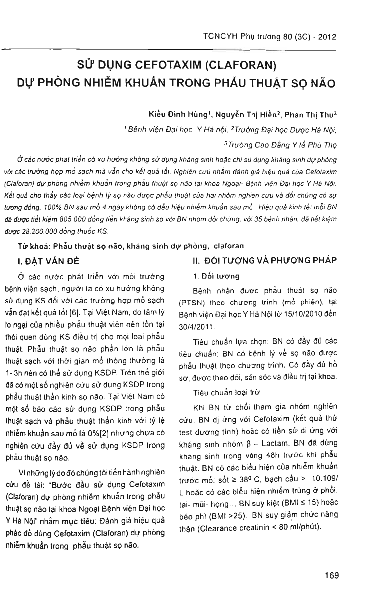 Sử dụng Cefotaxim (Claforan) dự phòng nhiễm khuẩn trong phẫu thuật sọ não