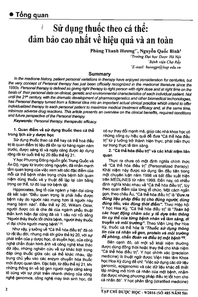 Sử dụng thuốc theo cá thể: Bảo đảm cao nhất về hiệu quả và an toàn