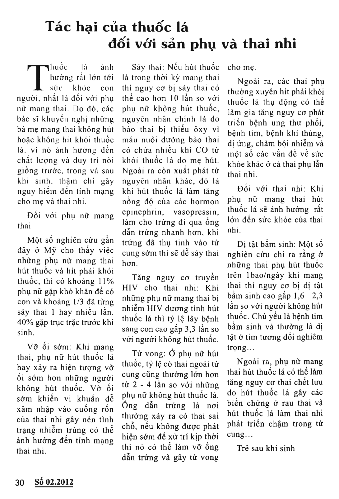Tác hại của thuốc lá đối với sản phụ và thai nhi