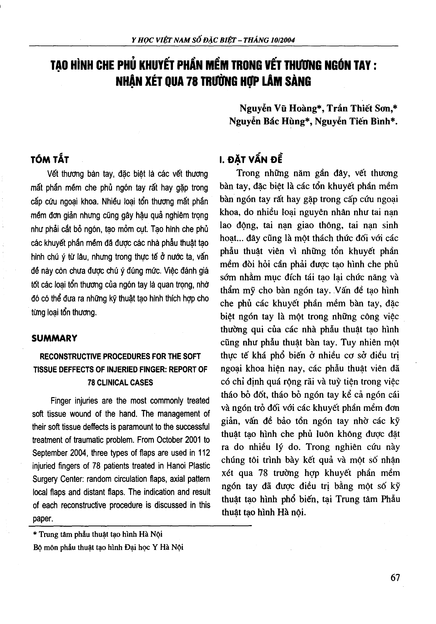 Tạo hình che phủ khuyết phần mềm trong vết thương ngón tay: nhận xét qua 78 trường hợp lâm sàng