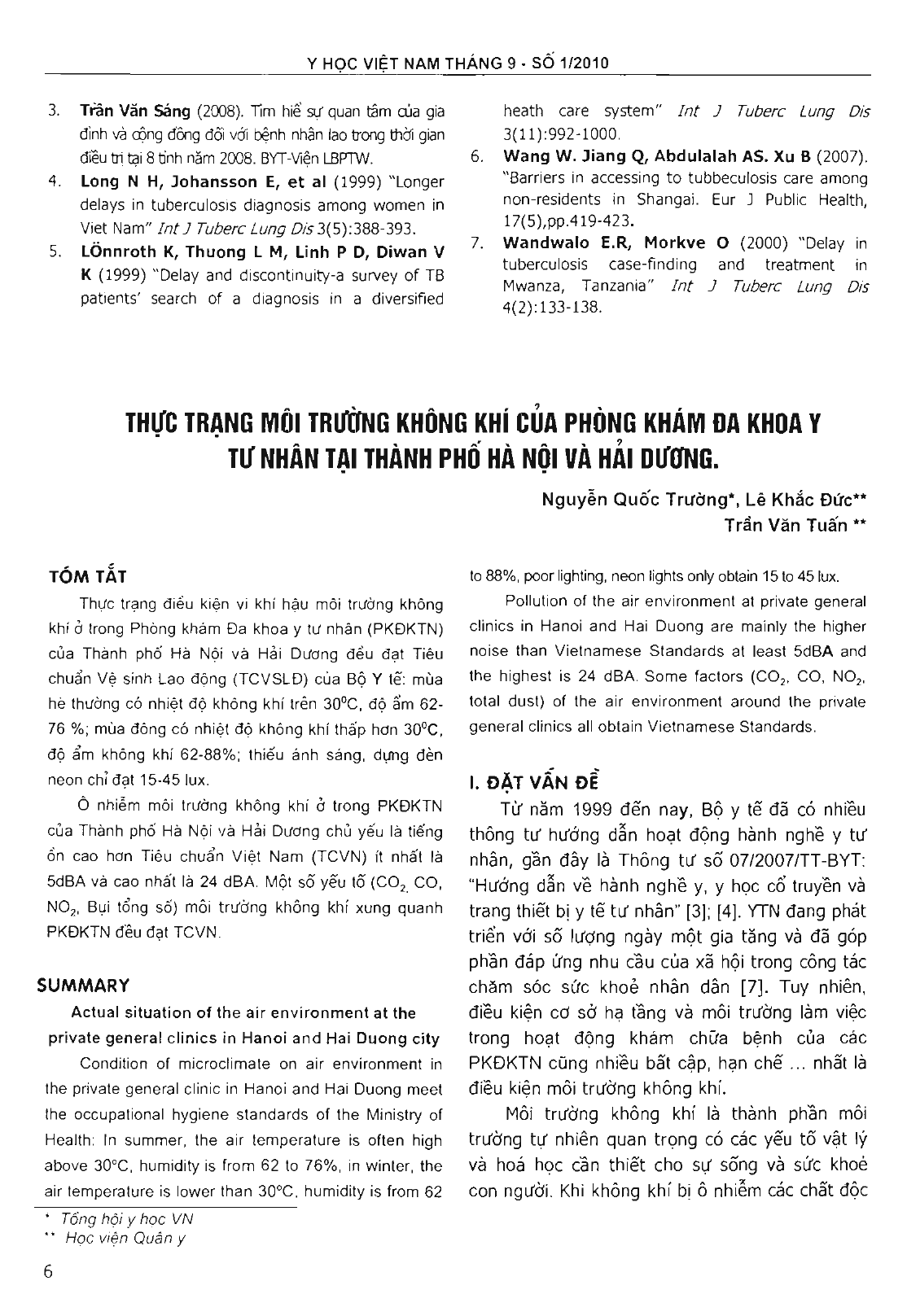 Thực trạng môi trường không khí của phòng khám đa khoa y tư nhân tại thành phố Hà Nội và Hải Dương