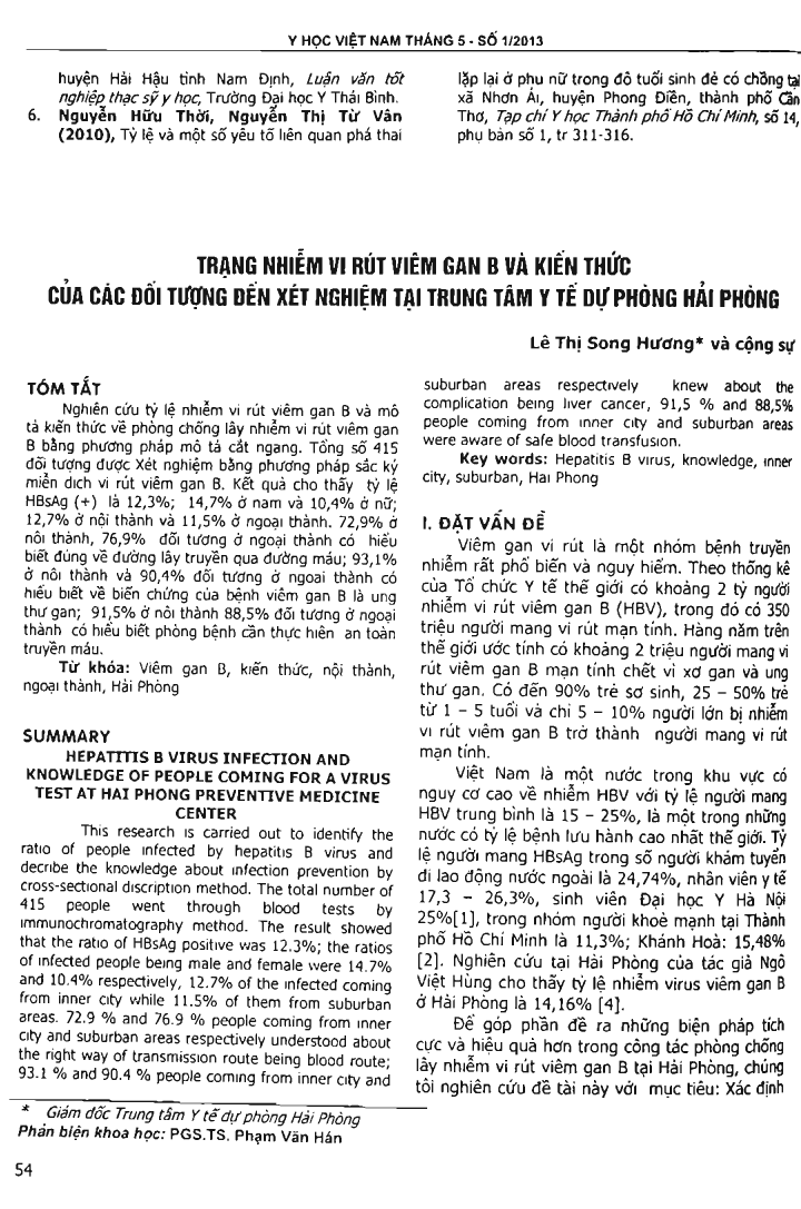 Thực trạng nhiễm virut viêm gan B và kiến thức của các đối tượng đến xét nghiệm tại trung tâm y tế dự phòng Hải Phòng