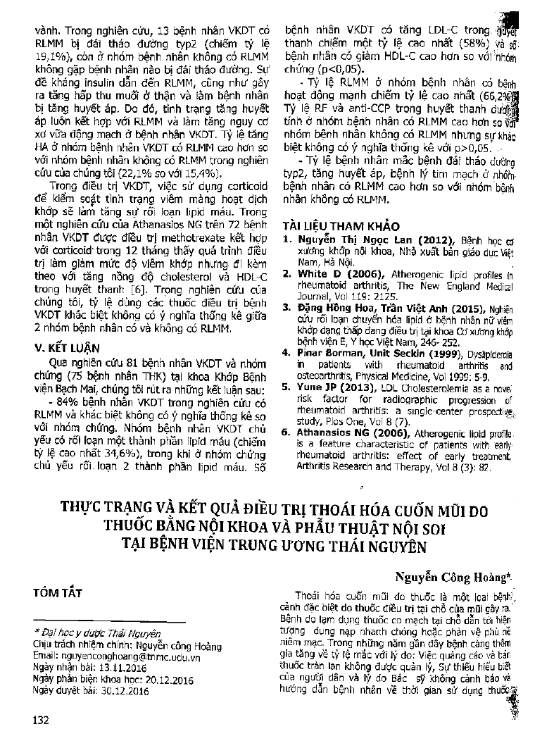 Thực trạng và kết quả điều trị thoái hóa cuốn mũi do thuốc bằng nội khoa và phẫu thuật nội soi tại bệnh viện Trung ương Thái Nguyên