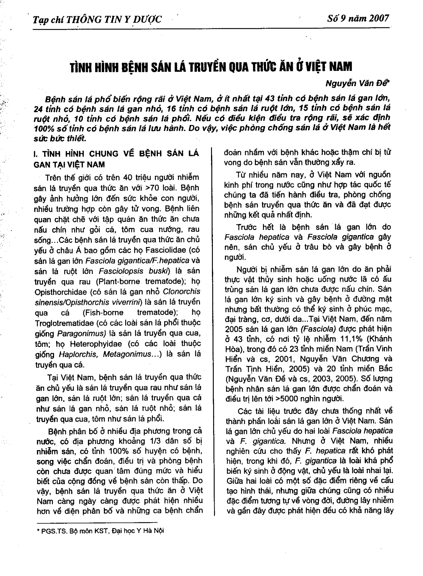 Tình hình bệnh sán lá truyền qua thức ăn ở Việt Nam