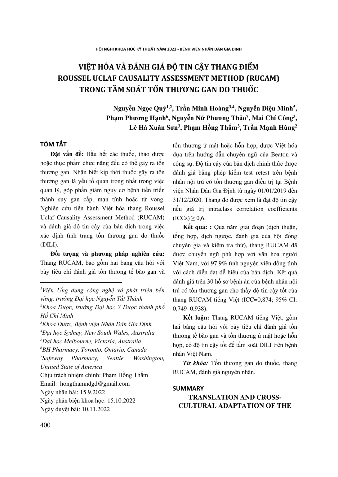Conducted to investigate the VTE preventive program at Nhan Dan Gia Dinh Hospital, Ho Chi Minh City. Methods: A retrospective, descriptive crosssectional study was conducted by collecting data from health records of patients undergoing surgeries at Nhan Dan Gia Dinh Hospital in March of 2020. VTE and bleeding risks were measured using Caprini and IMPROVE scale, respectively. Rationale of VTE prophylaxis was assessed in accordance with the VNHA 2016 and ACCP 2012 guidelines. Results: Among 232 patients recorded (average age of 53.0 ± 18.5 and BMI of 22.0 ± 3.3), men accounted for over 50%. The median of treatment duration was 6 days (3–11). VTEassociated factors included laparoscopic surgery > 45 minutes (20.8%), age 41–60 (13.7%), major surgery > 45 minutes (9.2%), and cancer (8.6%). Over 70% patients were at high or very high risk of thrombosis (Caprini ≥ 3 points). Bleeding risks were observed in patients aged 40–84 (42.1%), male gender (31.3%), and those with cancer (13.2%). Only 0.9% patients had high risk of bleeding (IMPROVE ≥ 7 points). The proportion of contraindications to pharmacological measures was 3.9%. The observed rates of VTE prophylaxis over total of eligible patients were: 28/209 for pharmacological measures, 0/8 for mechanical measures, and 15/15 for early mobilization. Overall proportion of rational VTE prophylaxis was 18.1%. Conclusion: The use of prophylactic anticoagulation in surgical settings is important in preventing VTE. More guideline-compliant supportive measures should be implemented to improve the VTE prophylaxis clinical practice.