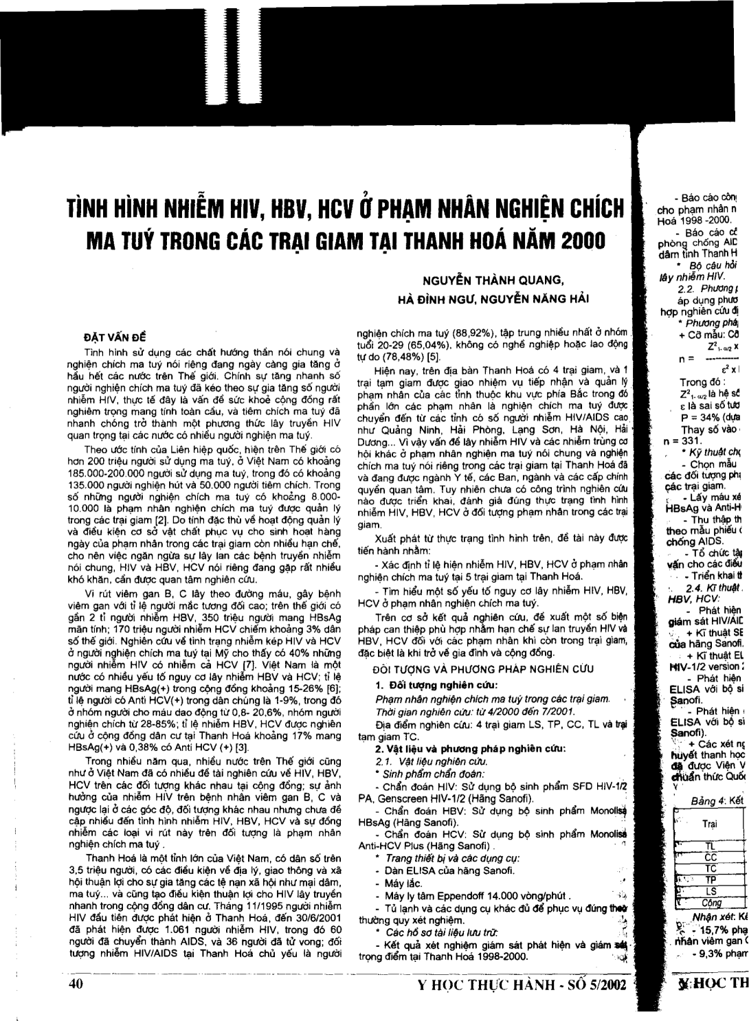Tình hình nhiễm HIV, HBV, HCV ở phạm nhân nghiện chích ma tuý trong các trại giam tại Thanh Hoá năm 2000