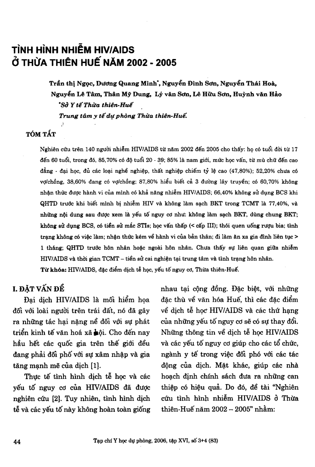 Tình hình nhiễm HIV/AIDS ở Thừa Thiên Huế năm 2002-2005