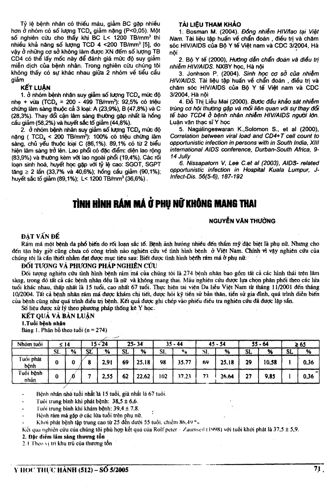 Bệnh rám má gặp nhiều ở phụ nữ lứa tuổi từ 25 đến 55 tuổi (86,49% ). Tuổi trung bình khi bệnh khởi phát là 38,5 +- 6,6. Rám má có thương tổn khu trú ở thượng bì chiếm tỷ lệ cao (58,03% ), tiếp theo là hỗn hợp (cả trung bì và thượng bì) chiếm 20,2% . Các thương tổn đều có ở hai bên má với các đám da tăng sắc tố, trong đó tăng sắc tố từ đậm trở lên chiếm 66,33% . Các yếu tố như nghề nghiệp có ảnh hưởng đến bệnh rám má với 50,73% bệnh nhân là các nữ công nhân và nông dân. 6,56% bệnh nhân rám má có các bệnh da rối loạn sắc tố; 26,64% có bệnh mãn tính; 19,7% có liên quan đến sảy thai, phá thai hay uống uống tránh thai; 9,72% bệnh nhân rám má có các bệnh nội tiết.