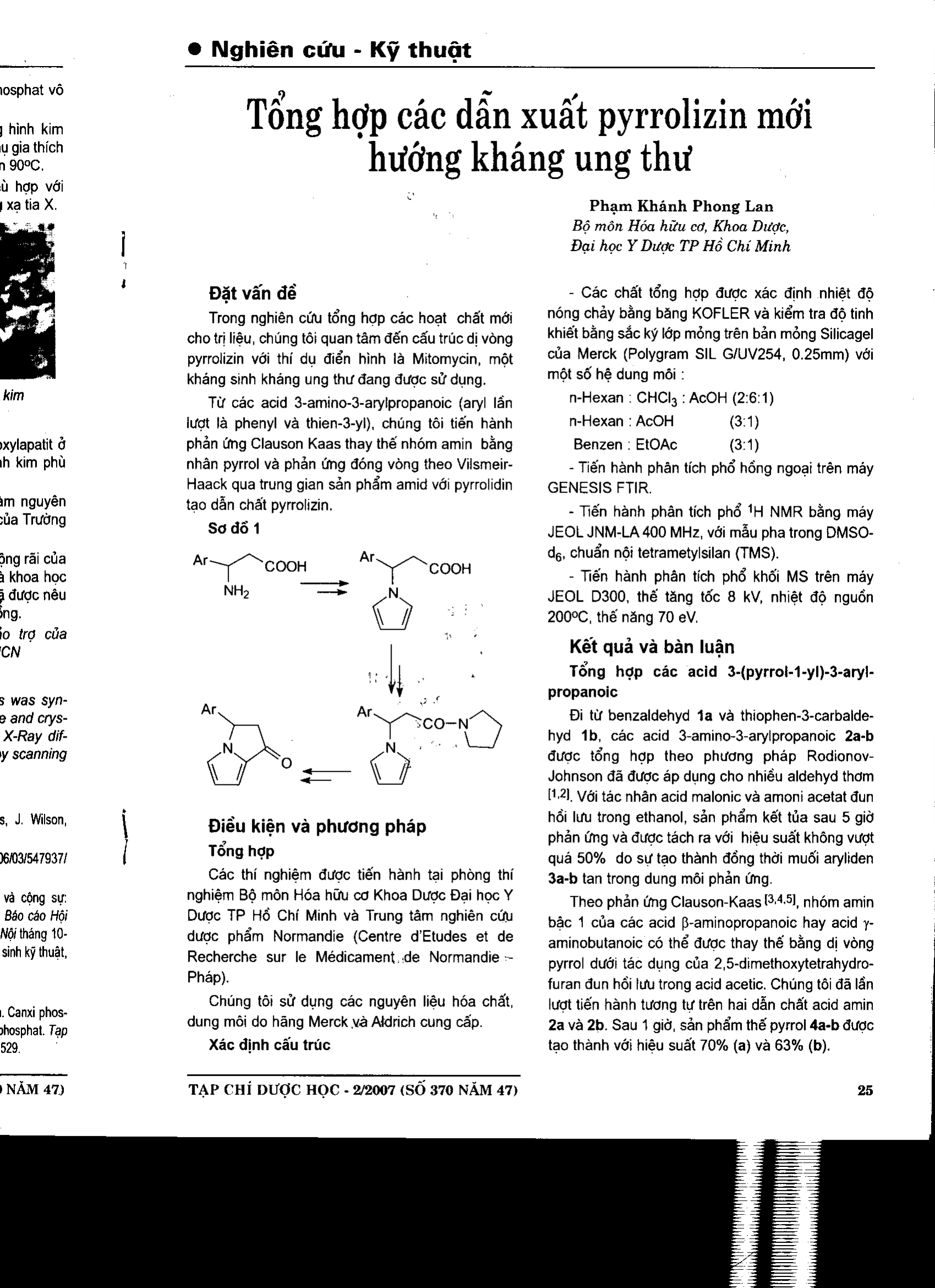 Tổng hợp các dẫn xuất pyrrolizin mới hướng kháng ung thư