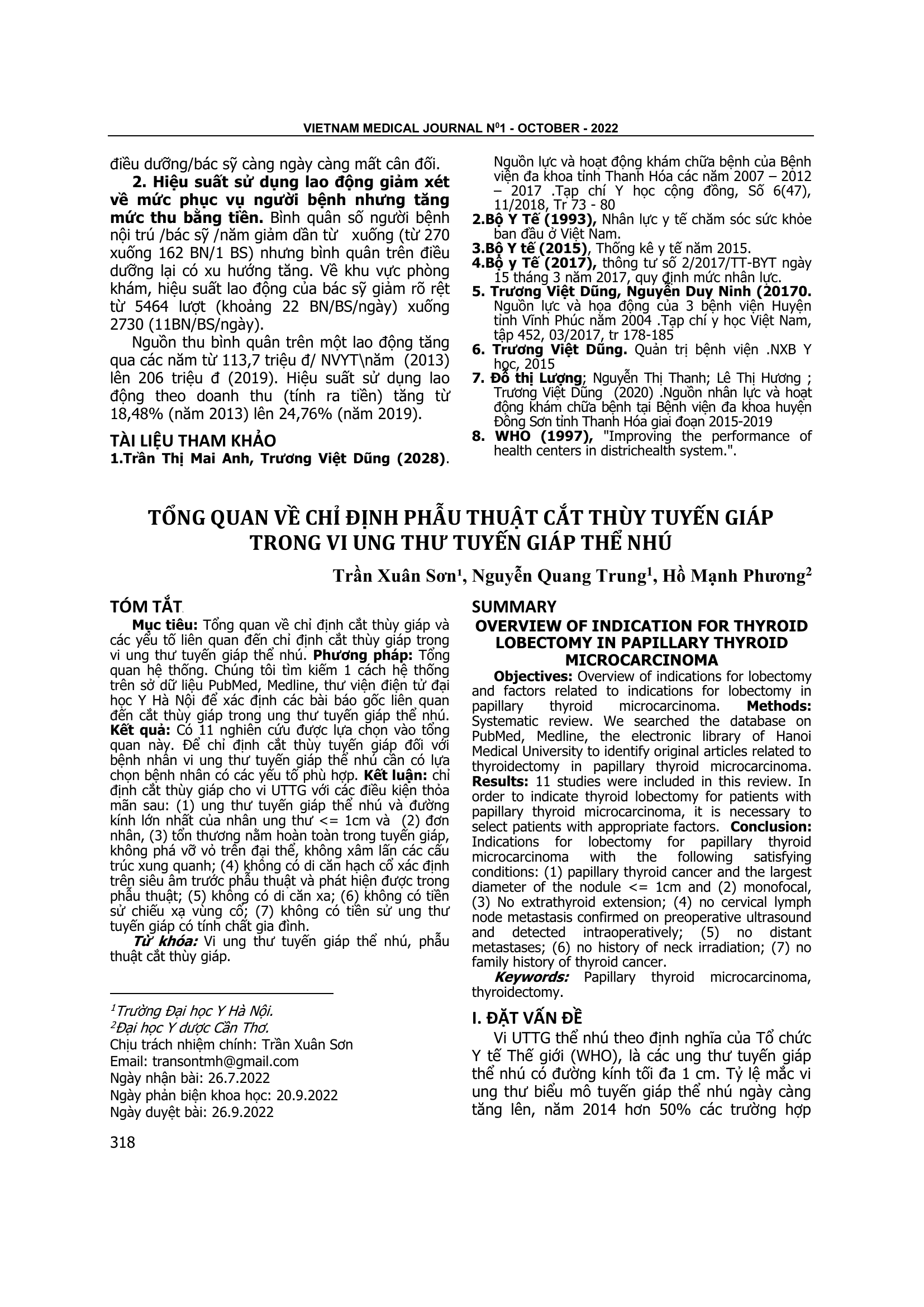 Tổng quan về chỉ định cắt thùy giáp và các yếu tố liên quan đến chỉ định cắt thùy giáp trong vi ung thư tuyến giáp thể nhú. Phương pháp: Tổng quan hệ thống. Chúng tôi tìm kiếm 1 cách hệ thống trên sở dữ liệu PubMed, Medline, thư viện điện tử đại học Y Hà Nội để xác định các bài báo gốc liên quan đến cắt thùy giáp trong ung thư tuyến giáp thể nhú. Kết quả: Có 11 nghiên cứu được lựa chọn vào tổng quan này. Để chỉ định cắt thùy tuyến giáp đối với bệnh nhân vi ung thư tuyến giáp thể nhú cần có lựa chọn bệnh nhân có các yếu tố phù hợp. Kết luận: chỉ định cắt thùy giáp cho vi UTTG với các điều kiện thỏa mãn sau: (1) ung thư tuyến giáp thể nhú và đường kính lớn nhất của nhân ung thư <= 1cm và (2) đơn nhân, (3) tổn thương nằm hoàn toàn trong tuyến giáp, không phá vỡ vỏ trên đại thể, không xâm lấn các cấu trúc xung quanh; (4) không có di căn hạch cổ xác định trên siêu âm trước phẫu thuật và phát hiện được trong phẫu thuật; (5) không có di căn xa; (6) không có tiền sử chiếu xạ vùng cổ; (7) không có tiền sử ung thư tuyến giáp có tính chất gia đình.