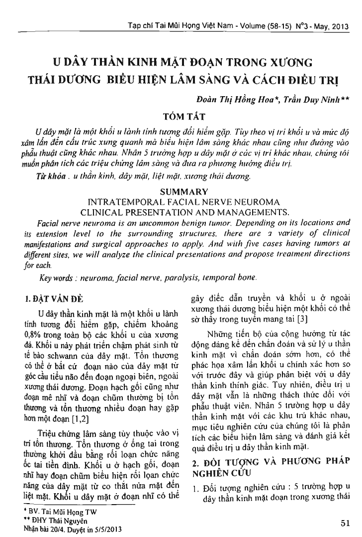 U dây thần kinh mặt đoạn trong xương thái dương biểu hiện lâm sàng và cách điều trị