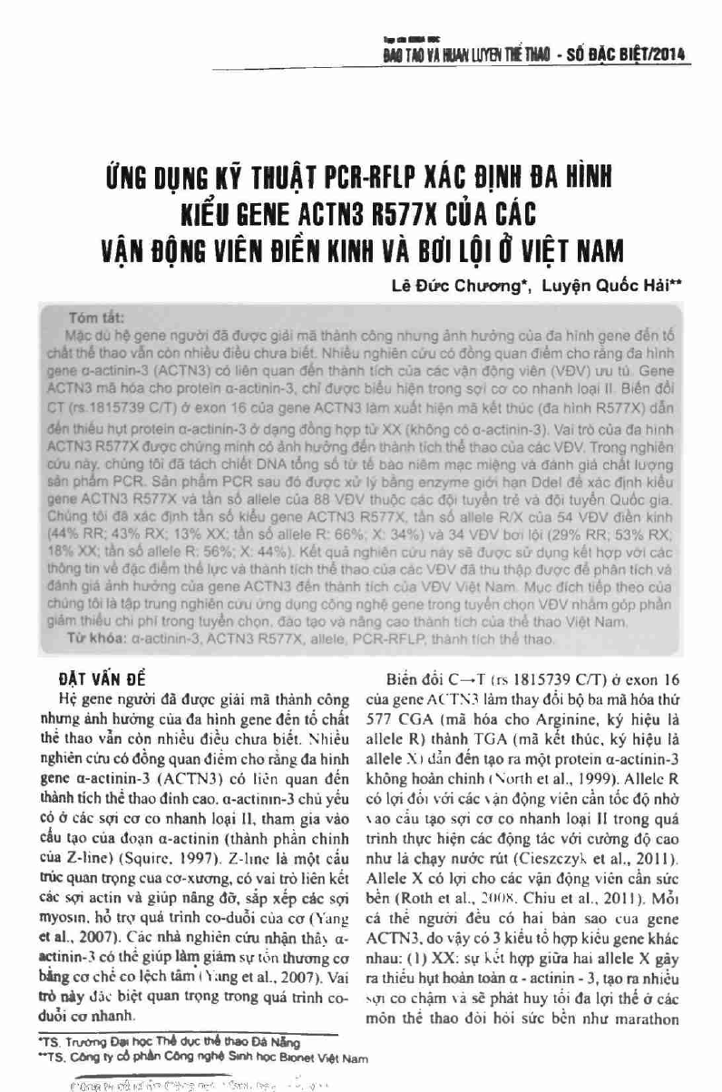 ứng dụng kỹ thuật PCR-RFLP xác định đa hình kiểu Gene ACTN3 R577X của các vận động viên điền kinh và bơi lội ở Việt Nam