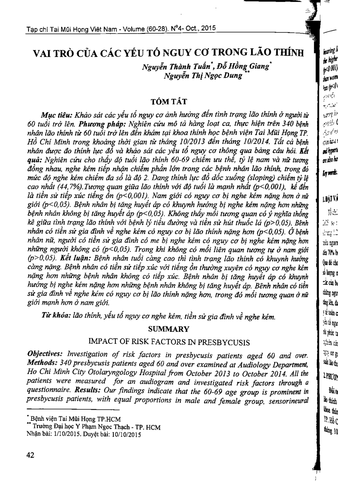 Vai trò của các yếu tố nguy cơ trong lão thính