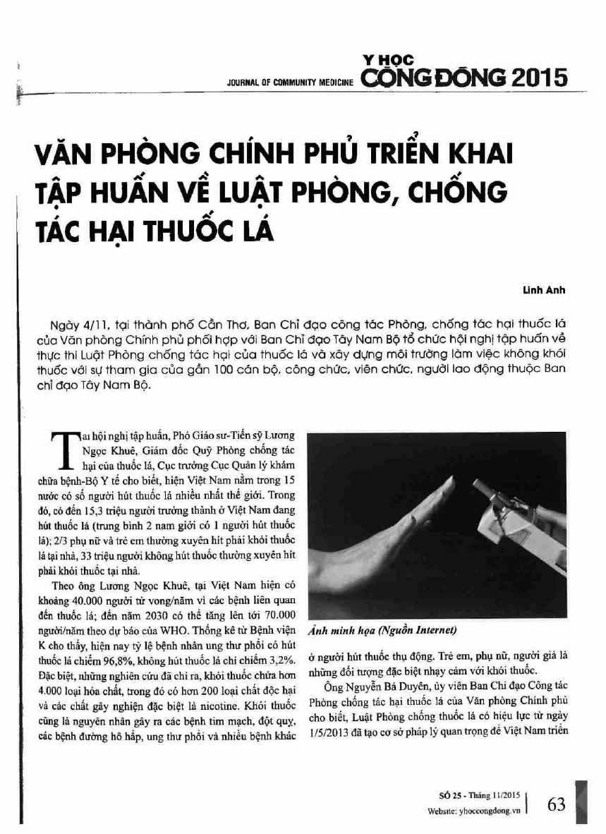 Văn phòng chính phủ triển khai tập huấn về luật phòng, chống tác hại thuốc lá