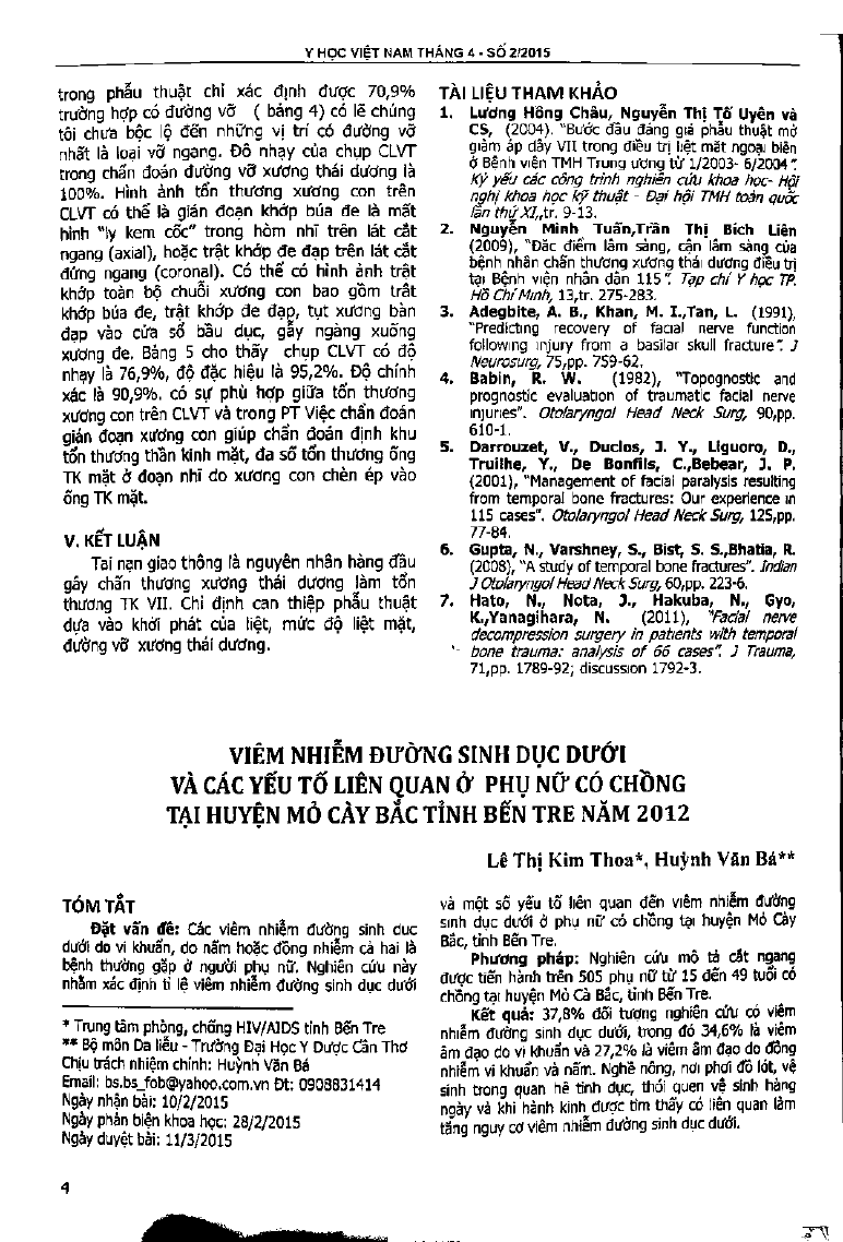 Viêm nhiễm đường sinh dục dưới và các yếu tố liên quan ở phụ nữ có chồng tại huyện Mỏ Cày tỉnh Bến Tre năm 2012