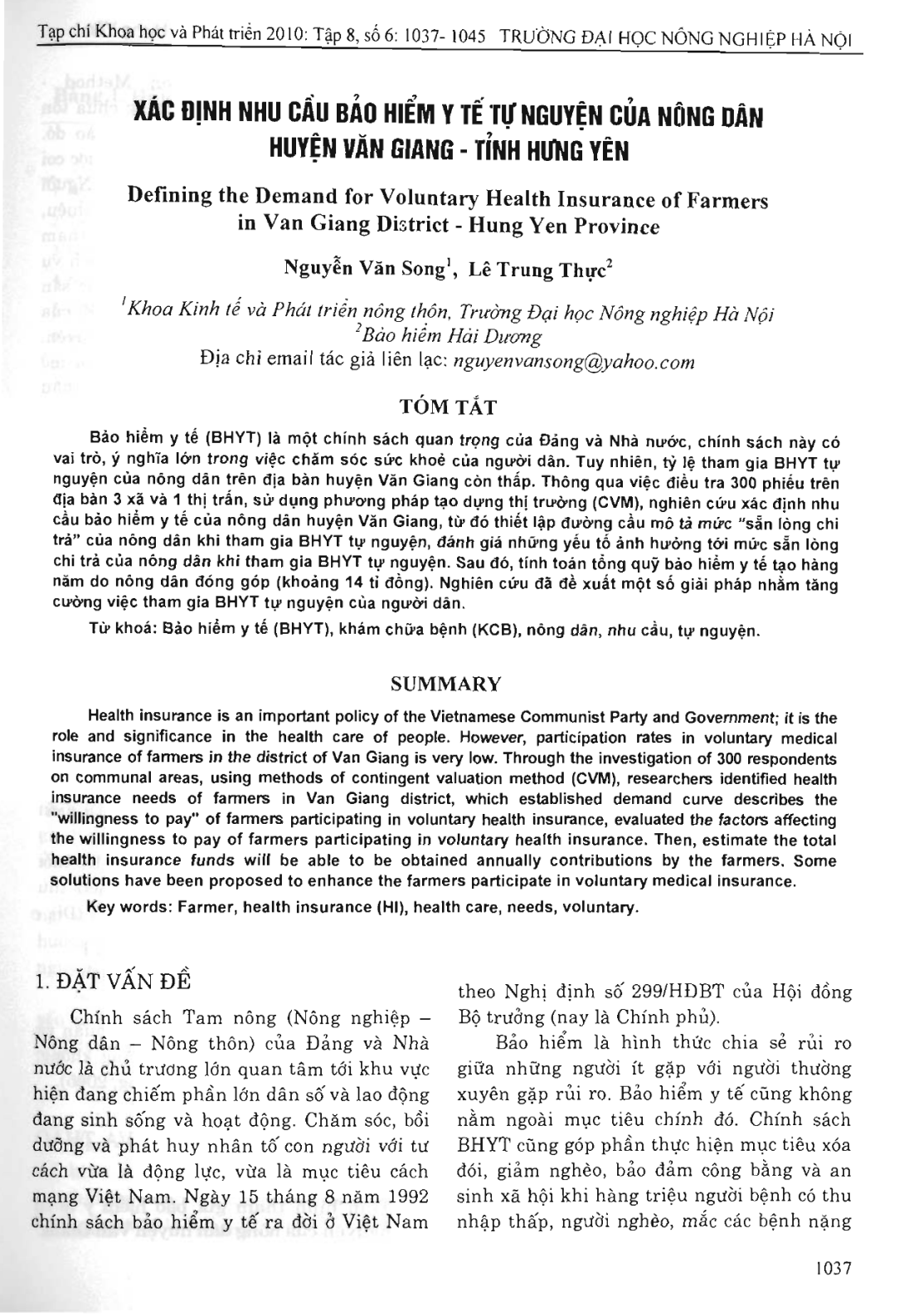 Xác định nhu cầu bảo hiểm y tế tự nguyện của nông dân huyện Văn Giang - Hưng Yên
