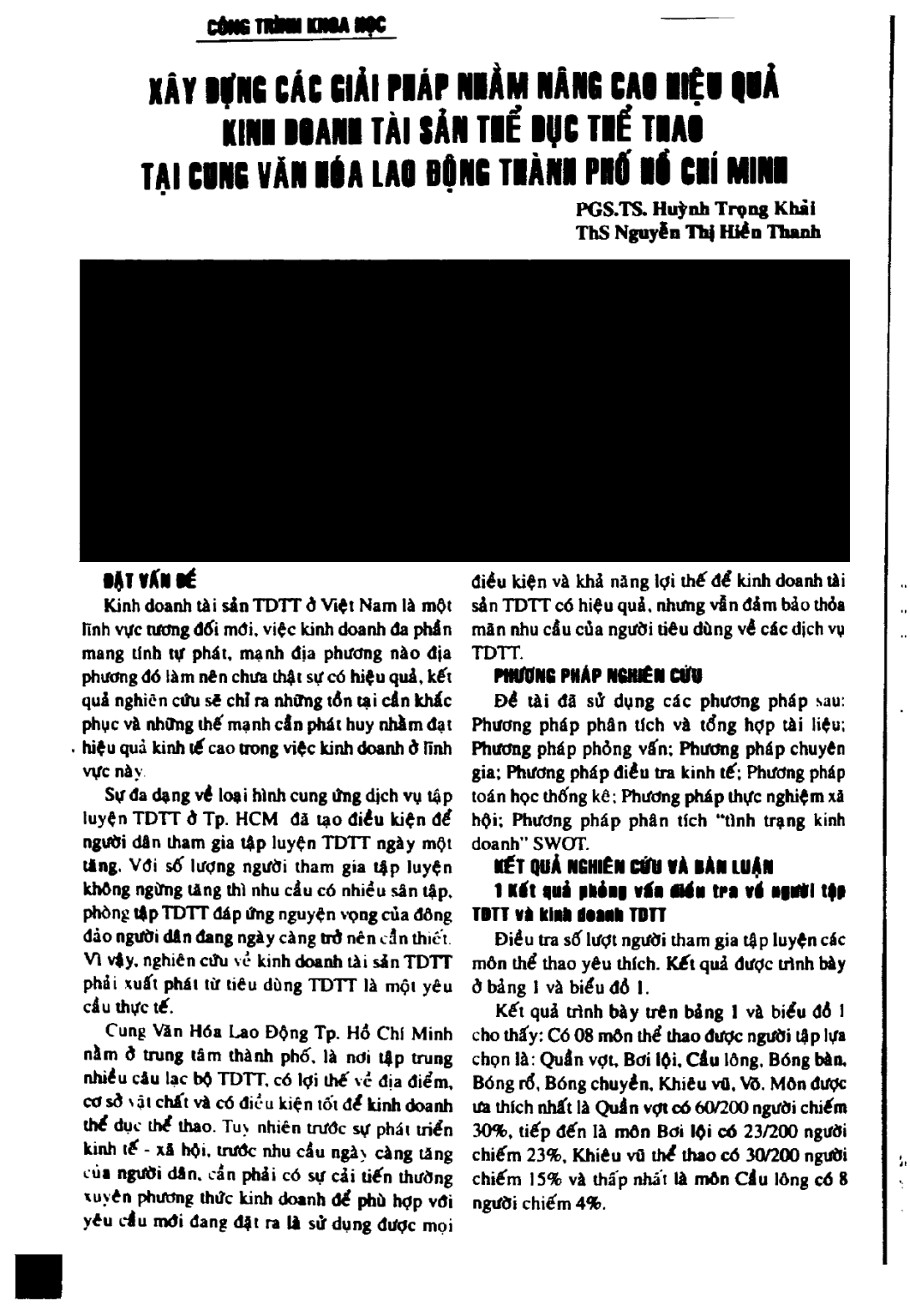 Xây dựng các giải pháp nhằm nâng cao hiệu quả kinh doanh tài sản thể dục thể thao tại Cung văn hóa lao động Thành phố Hồ Chí Minh
