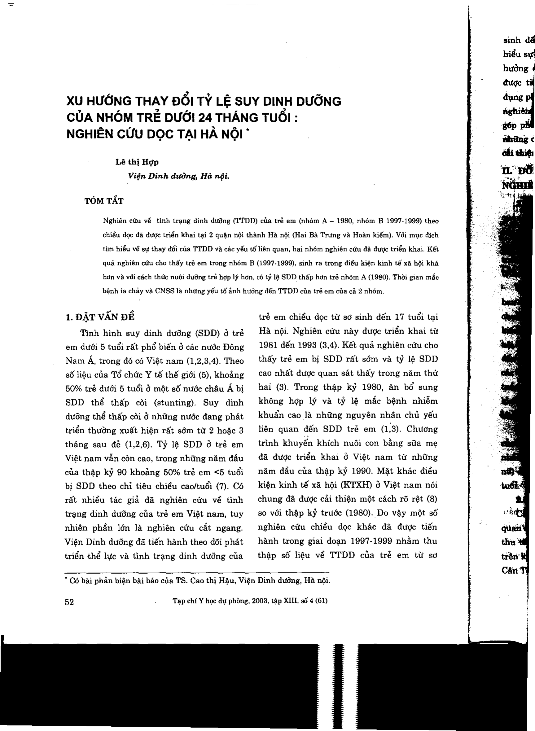 Xu hướng thay đổi tỷ lệ suy dinh dưỡng của nhóm trẻ dưới 24 tháng tuổi: nghiên cứu dọc tại Hà Nội